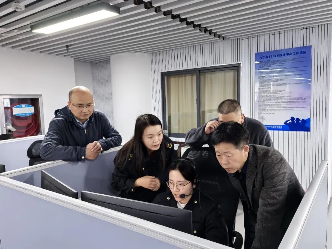 新春将至,年味渐浓。2月15日上午,九江市市场监管局党组书记、局长朱发炳前往12315指挥中心,开展春节前走访慰问活动,向坚守消费维权一线的值守人员送上节日问候与美好祝福,实地督导调研春节期间消费维权保障工作落实情况。