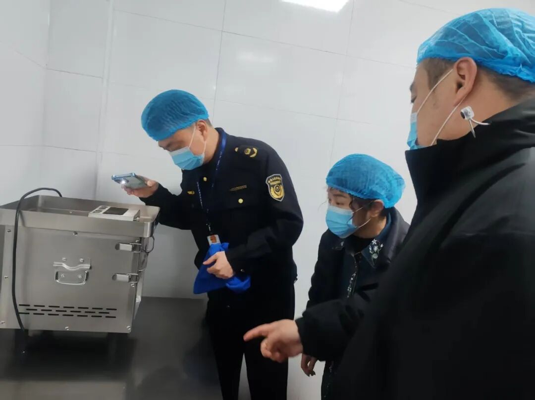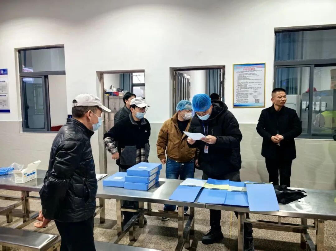 在九江福多多供应链管理有限公司,检查组细致核查大宗食材采购准入、食材贮存、冷链运输、索证索票等情况,现场扫码核验畜禽产品检疫证明和农产品承诺达标合格证,确保每一批次食材来源可溯、去向可追。在各学校食堂,检查组紧盯主体责任落实,详细检查“四方同餐”“两长陪餐”制度执行、膳食经费管理公示、进货查验记录制度落实、病媒生物防制、餐饮具清洗消毒、食品留样等关键环节,逐一核对从业人员健康证明,对发现的问题当场填写问题清单,录入“移动市监”平台,并指导属地监管部门跟进整改闭环。